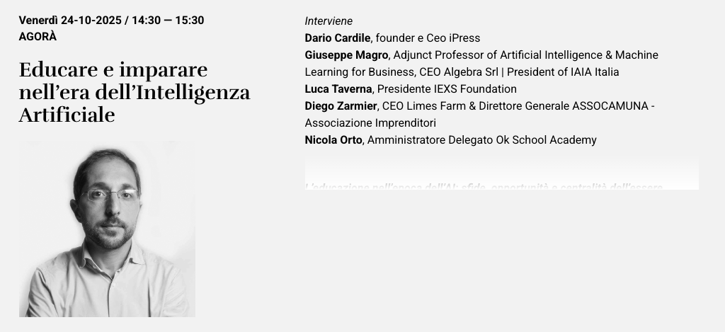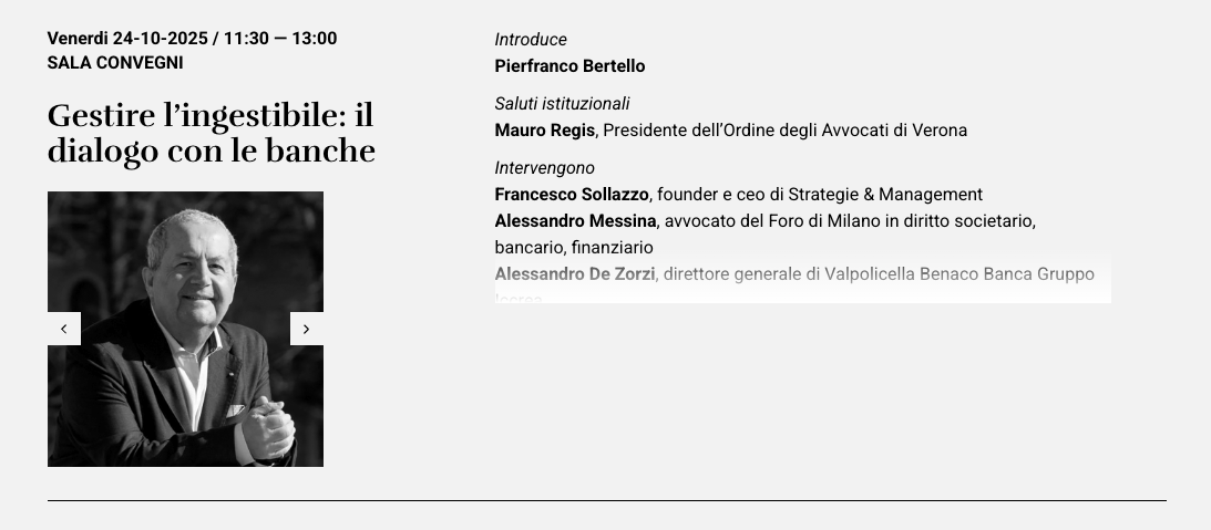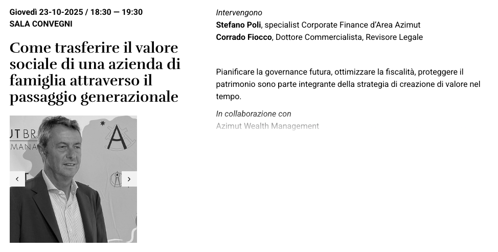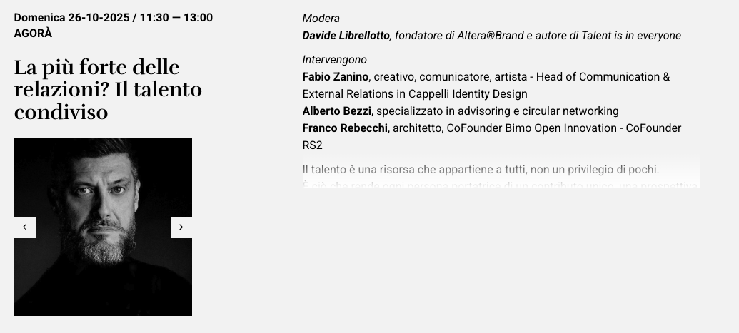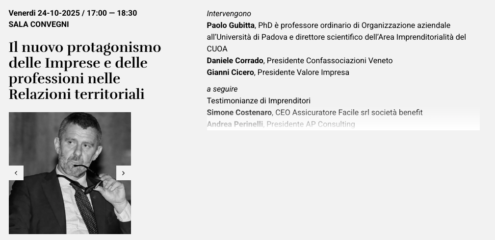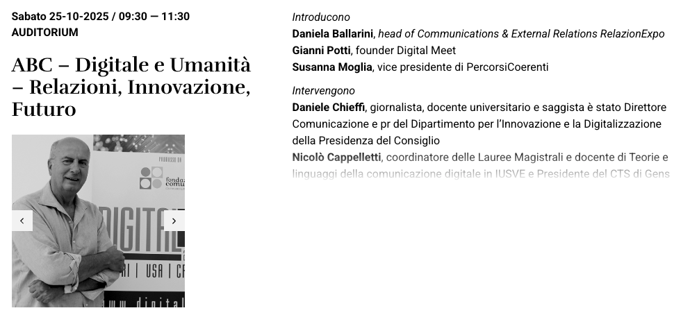 È possibile prenotare un solo convegno per ogni fascia oraria. La registrazione dà diritto di precedenza rispetto ai visitatori non prenotati.