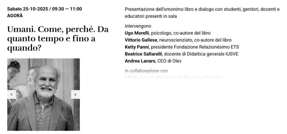Se vuoi prenotare altri eventi torna alla pagina programma CLICCA QUI
